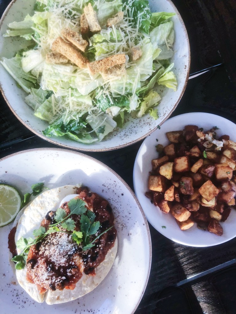 They have both a restaurant and a little bakery inside so whether you want to sit down and eat a meal or grab a pastry and coffee, they have you covered. Their bakery features delicious pastries such as homemade cakes, croissants, cookies, scones, and so much more! Walking by the pastry case makes it difficult not to drool and pick something up. I’ve tried their cake, cookies, and cinnamon roll and all are outstanding. My favorite was the cake because it was so moist, light and flavorful. I grabbed a slice of the carrot cake – which is definitely an underrated flavor, and theirs was an absolute show stopper! If you are stopping in to eat at their restaurant they offer lunch and dinner, but also an incredible weekend brunch. Their weekend brunch features classics like huevos rancheros, breakfast sammie, and steak and eggs. You will also find benedicts, omelets, and pancakes. If you’re wanting more of a lunch for your brunch, they also have salads, soups, and sandwiches for you to choose from! Their lunch and dinner menu is the same, but you will find dishes like butternut linguine, chicken sandwich, bbq mac and cheese, king salmon bowl, flank steak frites and so much more. Everything I have tried here is incredible. Make sure you grab their mimosa flight during your meal though – it is 4 tasting portions of mimosas featuring various, seasonal juices that are so fun!