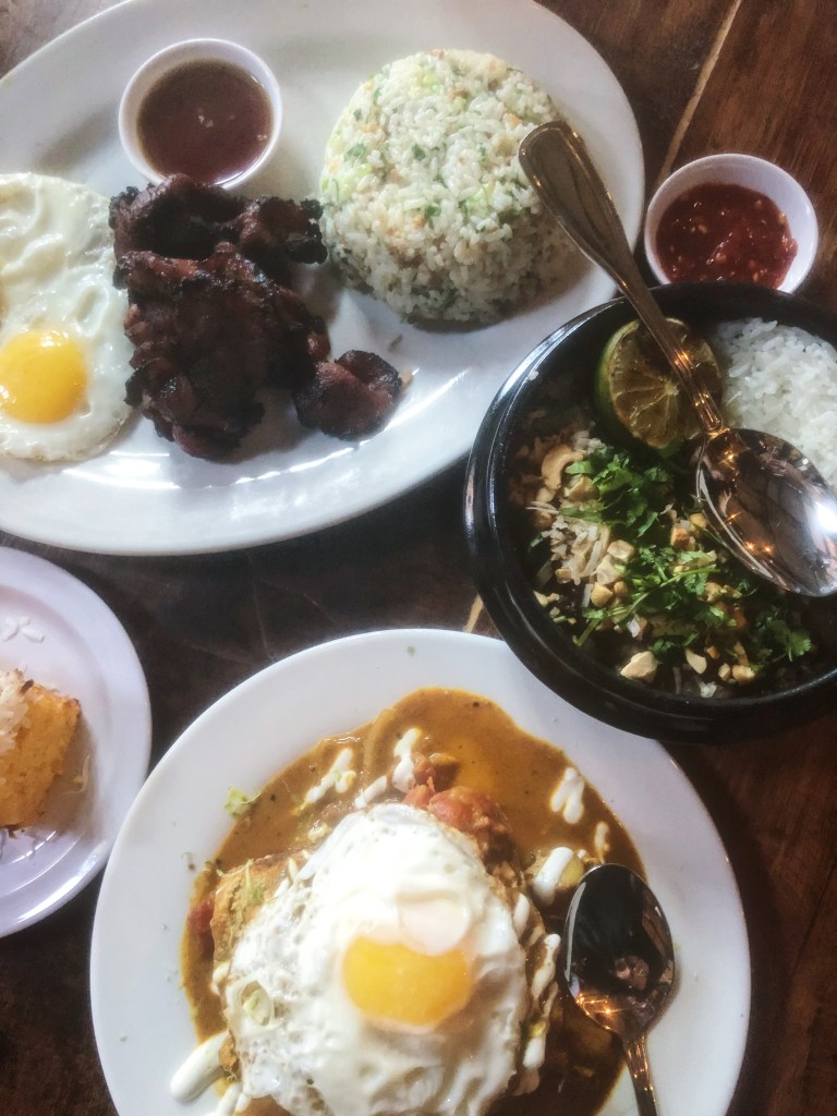 We grabbed their Bunny Chow, Lentil Curry, Tosilog, and Pineapple Cornbread. The Bunny Chow is a traditional African Dish and is delicious – this version comes in a bread like bowl (although its more square than round), filled with tender chicken, masala and topped with a sunny side up egg. It is large and pretty filling – there is a lot of bread so it is a bit on the heavier side. If you are wanting something comforting and to really fill you up, definitely get this dish. It is also a great option to share with someone since it is large enough for two! The Lentil Curry was surprisingly much better than I thought. It is a wonderful vegetarian option and comes with black lentils and sweet potatoes in a curry sauce topped with cashews. This option was lighter than the bunny chow and equally delicious – I actually think I loved this more, even though it was vegetarian. The Tosilog is a classic breakfast plate with fried eggs, fried rice, and tocino – which is filipino pork. Tocino is a sweeter, thicker version of bacon. I love tocino so much – the tosilog is great if you want something a bit lighter and simpler! Lastly, the pineapple cornbread. I want to love it so much – it is a thick slice of cornbread that is filled with pineapple chunks and topped with coconut flakes. This one just misses the boat a bit. It is pretty dry, and would be much better with some honey or something to help moisten it a bit. I took this home and heated it up in the microwave with butter and it was much better – so maybe get a slice to go and doctor it up when you get home.