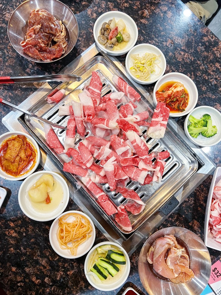 Who else LOVES korean bbq? It is one of my favorite meals, especially to share with friends and family. It is so fun to sit around the grill, cooking, laughing and stuffing your belly with more meat than you thought possible. New Gangnam BBQ is a fair amount south of Seattle, but they do one of the best AYCE in the area – in my opinion. They offer a few different tiers to their all you can eat so you can get exactly what your group is looking for. I typically go with the standard which is $28/person and gets you the classics – bulgogi, shirt rib, pork belly, bbq chicken and more! Their $32 and $35 options have more variety and the majority of the seafood options. It really depends what you want – if you are looking for the common KBBQ meats, then just get the $28 option.