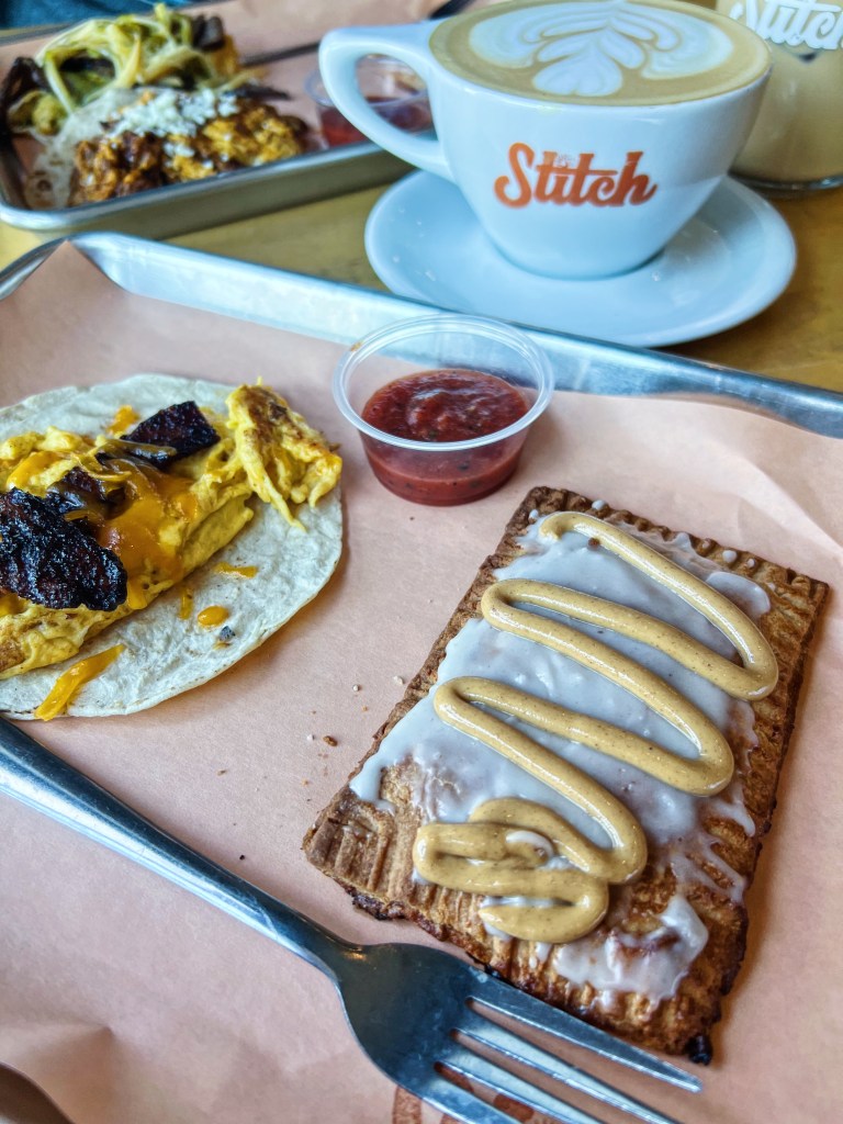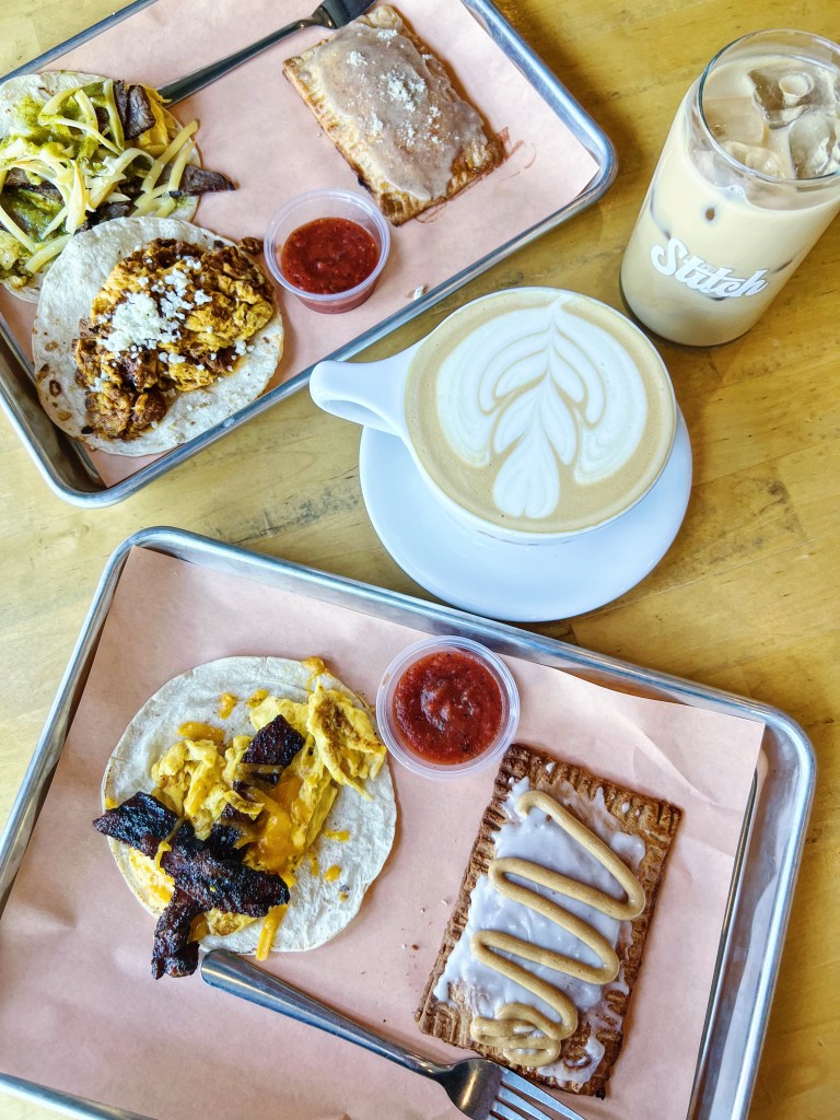 Oh Stitch, how I love you. I have written about Stitch before, but I feel like it deserves another post. Every time I go here, which is often, I am so impressed with the consistency of the food and the high quality. The staff is also always incredibly friendly and the environment and atmosphere is so welcoming. I think they have some of the best coffee in the city, especially their Tres Leches latte – it’s so smooth and creamy with a strong espresso flavor. Besides delicious coffee, their menu features breakfast tacos, tarts and tots – the 3 T’s! Any of their tacos can be turned into a burrito or a bowl. In addition to breakfast tacos they also have a section of “Over-Slept” items that are more lunch forward like Smoked Carne, Hot Honey Chicken and Grilled Shrimp. I haven’t made it to these tacos yet or their tots because I love their breakfast tacos so much.