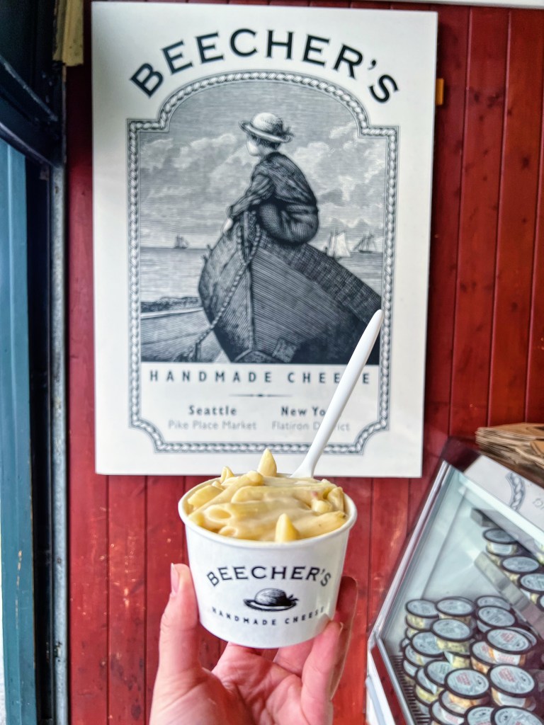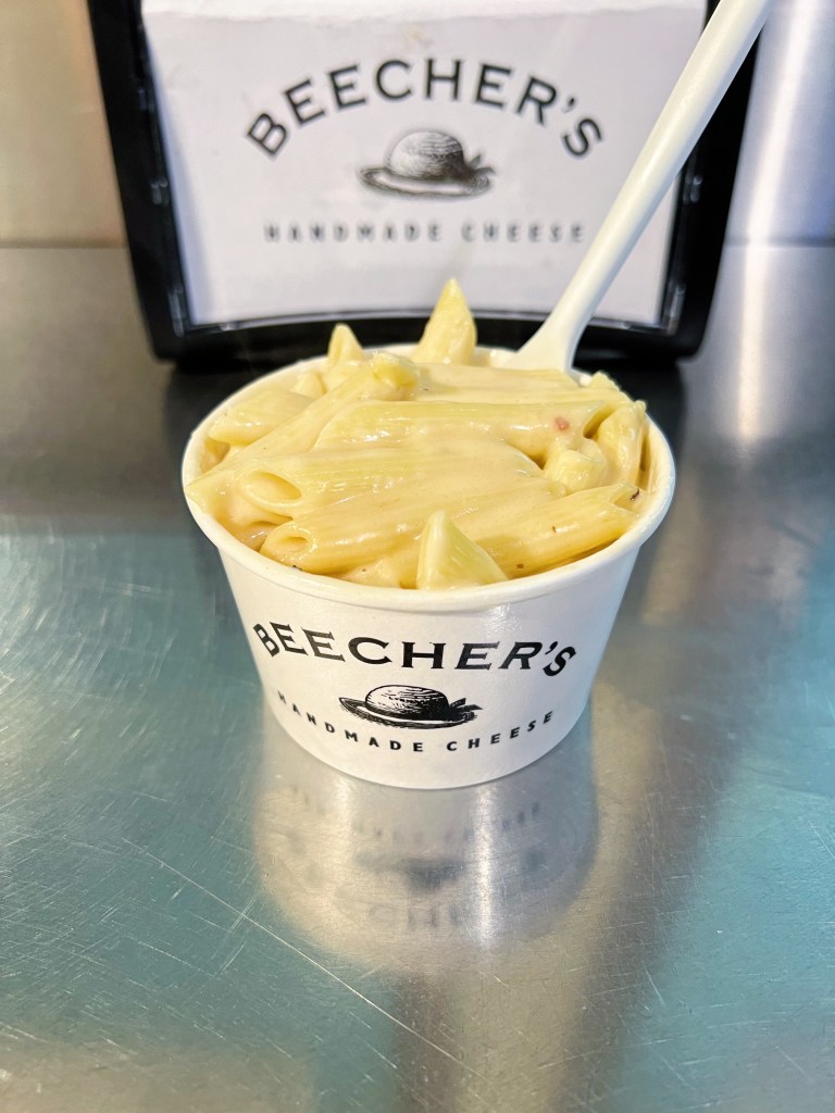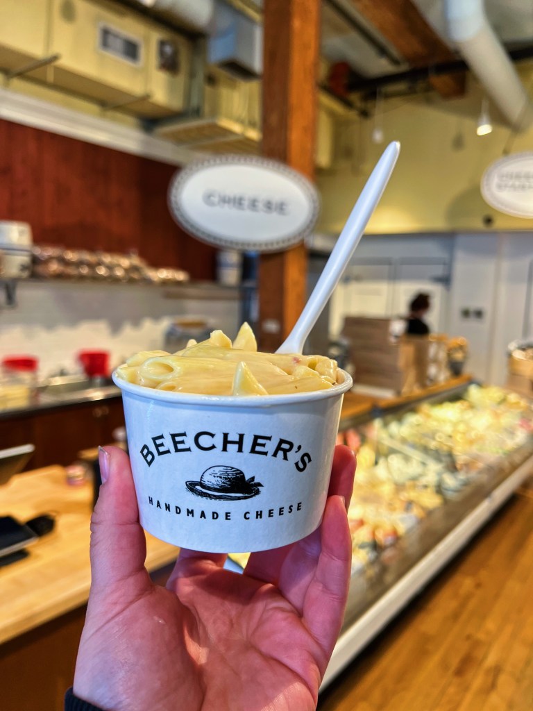 Picture this. You are walking down the red brick sidewalk in Pike Place, enjoying the sights, crowds, and sounds when something wonderful fills the air and hits your nose. Your eyes lock on a large vat of cheese curds being turned by dutiful employees donned in full gear. You’re then met with a line (depending on the time of day will dictate how long this line is) and you’re just a few minutes away from the best damn mac and cheese you’ve eaten in your life. Now you might be thinking to yourself, well I’ve picked up Beecher’s products from the grocery store before…so why would I wait in this line? If that comes across your mind, I am going to need you to slap yourself because no, they are not the same. Sure Beecher’s products from the grocery are fine and still taste good – I mean if they didn’t they wouldn’t be selling them, right? But that is like saying that ice cream is better when you leave it in the car on a hot summer day. Sure, it still is technically ice cream and tastes like ice cream, but is it as delicious as when it is served straight from the pint in a warm waffle cone? Or take a burger for example. A burger you’ve door dashed because you don’t want to go to the restaurant is still a burger and the flavor is okay….but does it truly taste the same as a burger right off the grill served to you immediately where the meat is still hot and the bun isn’t soggy yet. THAT, that is why you are in the line because the magic of fresh Beecher’s is just unmatched!