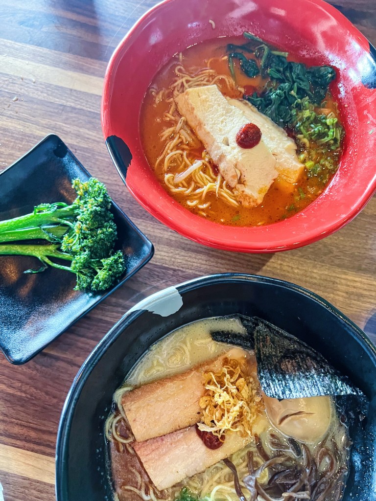 Ramen Time – we ordered Spicy Chicken Ramen and Jinya Tonkotsu Black. The spicy chicken had a great flavor with some kick. The chicken was really tender and the broth was also really creamy and rich. The tonkotsu black broth was also incredible – so creamy and garlicky. The only thing I wasn’t a real fan of was the pork – it was on the chewy, fatty side so I couldn’t finish it. I wish they had cooked it a bit longer or seared the fat to crisp it up more. Fat adds flavor, yes, but I don’t love it when it is not cooked well. I would swap it for chicken next time, but overall the broth and toppings were on point!