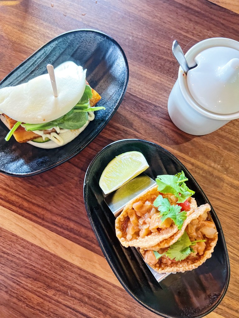 To start, we had to try their buns and poke tacos. The JinYa bun comes stuffed with slow braised pork, cucumber and greens with kewpie mayo in between a steamed bun. The bun was so light and fluffy, which is hard to nail. The pork was soft, salty and sweet and it paired really well with the crunchy cucumbers and creamy kewpie mayo. I wish I had ordered more of these because I had to share and I wanted it all for myself. Next, the salmon poke tacos – they were pretty good. The shell was crispy and the salmon was fresh and soft and so buttery. While I enjoyed them, I did feel like they were missing something – perhaps some salt or something tangy. I would probably only order these when they are on special since they are pretty pricey for what you get.
