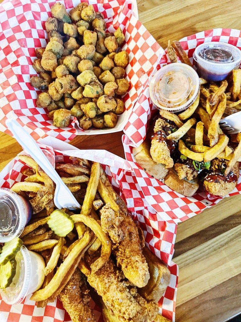 Their menu features classic fried chicken and of course Nashville, but you will also find options like Korean Hot, Sweet Tea, Sweet Garlic Chili Thai, Parmesan Tenders and Buffalo-Bleu. Like hot damn, how do you even decide?! I grabbed two options to try – the Bumble Bee and the Korean Hot. For good measure I also grabbed Okra. The flavors mentioned are their tenders which come in a basket with fries, you can also grab one of their sandwich or waffle options! The Bumble Bee is a honey-butter glazed fried chicken that is so crispy and sweet. These chicken tenders are no joke and are crunchy on the outside with a juicy, tender and large piece of meat in the middle. I loved how much chicken was actually in these tenders – they do not skimp on portions either! The honey butter was a wonderful first timer choice since it was slightly sweet, but the chicken wasn’t drenched in too much honey. You also get to choose 2 dipping sauces so I grabbed Honey Mustard and Ranch; two of my favorites. Next we reached for the Korean Hot – these are tossed in a traditional gochujang sauce for a kick of heat. Spice warning on these if you are not into spicy, then I would recommend skipping these. If you have had gochujang and can handle the spice, don’t skip these! Lastly, the Okra. I should preface this with the statement that I think okra is slimy and I would rather not eat it. But Oklahomans are crazy for their okra so I figured if I am living here now then I better learn to like it. To my absolute surprise, Ray’s okra was so damn crispy and crunchy and there was not a trace of slime. If all okra was like this, then maybe I would have learned to like it long ago!