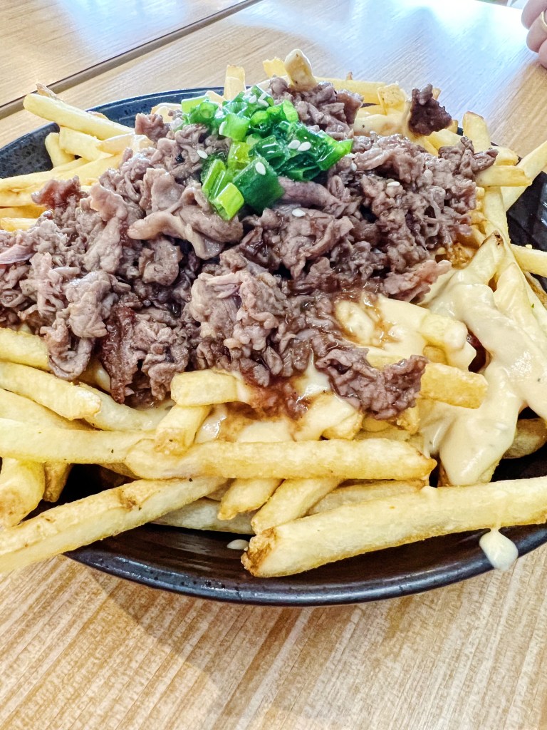 We started with an order of their Gangnam Style Fries ($12.25). This starts with fries topped with juicy bulgogi, beer cheese fondue and scallions – you can also add a fried egg or kimchi to step up your fry game. The bulgogi on these was pretty good – tender, sweet and spicy, but the beer cheese was a bit much. Overall the dish was really heavy and needed something to lighten it up. I don’t think the beer cheese paired very well with the bulgogi – I think ditching the cheese and opting for a spicy mayo would be a more rounded choice. I would give these a 6/10. I was more hopeful for the banh mi and opted to try the Churricane. This comes with grilled flank steak, pickled carrots, cucumbers, jalapeno, cilantro, aioli and a side of their asian chimichurri sauce. The chimichurri sauce was really good and helped add so much flavor, but on its own, the banh mi was seriously lacking. It was dry and the steak didn’t have much flavor. The pickled carrots were also pretty bland and lacked that crunchy acidity you need to balance all the flavors. I would also note the balance of meat to veggies was a bit off and more vegetables were needed for the freshness it was missing. I would give this a 6/10 as well. My husband got the Banh Fire – it comes with crispy buffalo chicken, pickled carrots, cucumbers, jalapenos, cilantro and aioli. The chicken was so crispy and tender with a spicy buffalo sauce. While the chicken was much more juicy than the steak, the above comments regarding the pickled carrots and vegetables remains the same. I would give this one an 8/10 though.