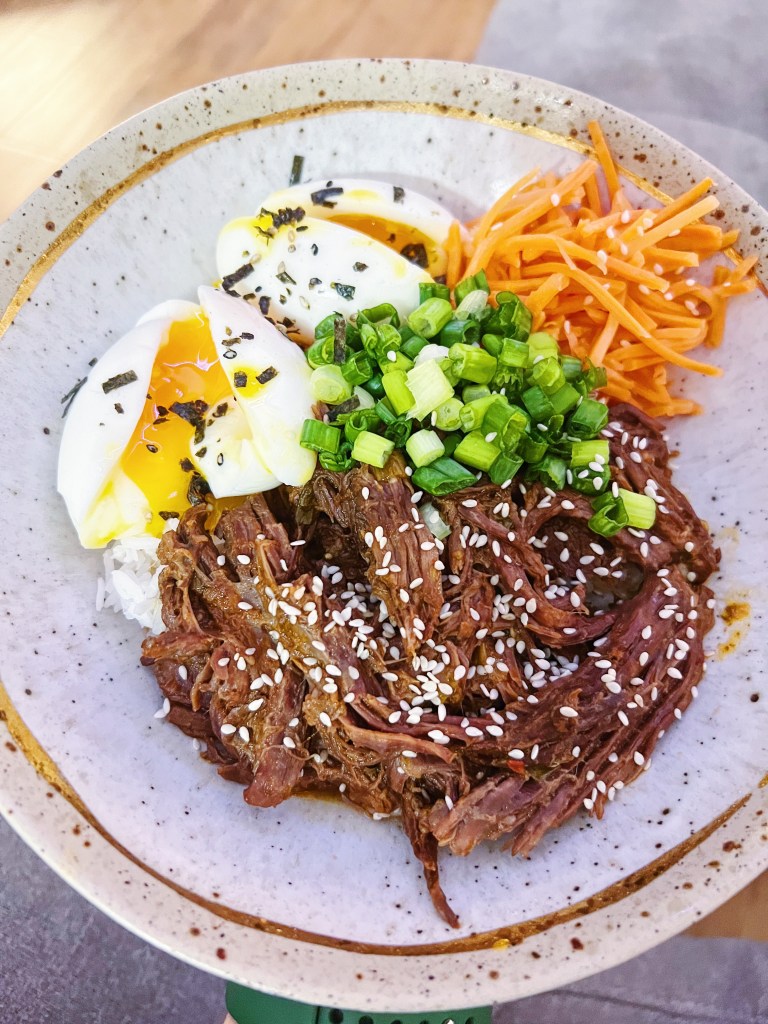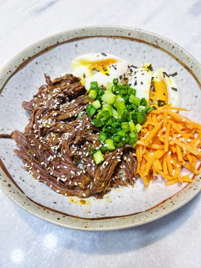 Nothing says comfort like a warm bulgogi bowl! The steak is so tender with a salty, sweet flavor that is unforgettable. I love topping my bowl with pickled carrots for a wonderful crunch and a tang. I also always pair it with a soft boiled egg because that runny yolk is just too perfect for words! This recipe is definitely not an authentic bulgogi, but it is my take on it and it is so easy in the InstantPot that makes it great for a busy week!
