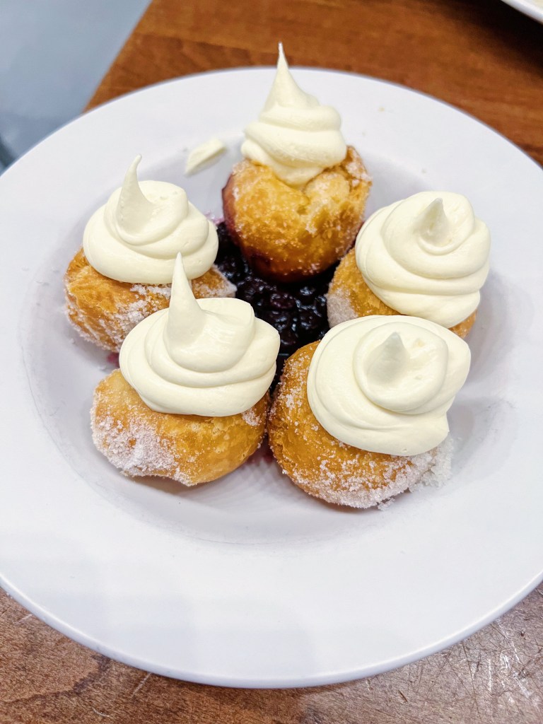 This place is all about biscuits, I mean I guess they have to be with biscuits in the name, but they do not play around! Their menu does feature biscuit and non-biscuit dishes though so you have some options if you aren’t in a biscuity mood. We grabbed the following dishes: Bonuts ($8.50), Southern Benny ($12), and the Princess ($12.50 +$2 for the egg). The Bonuts are fried donuts made from biscuit dough topped with lemon marscapone and served on a berry compote. These babies are served warm and are best eaten right away. They were light and fluffy. The lemon marscapone was so creamy with a subtle lemon flavor that paired so well with the berry compote. These were hands down a 10/10 and I wish I could eat these everyday. The Southern Benny comes loaded with sausage gravy, country ham and runny eggs. Oh my how delicious this also was! It is on the heavier side – so be prepared to either take a nap or have a few shots of espresso to wake back up. Lastly, the Princess is one of the favorites and I can see why. Nashville hot fried chicken with pickles, mustard and honey – make sure to add an egg as well so you get the perfect combination! Their chicken was lightly fried yet was so golden and crispy!