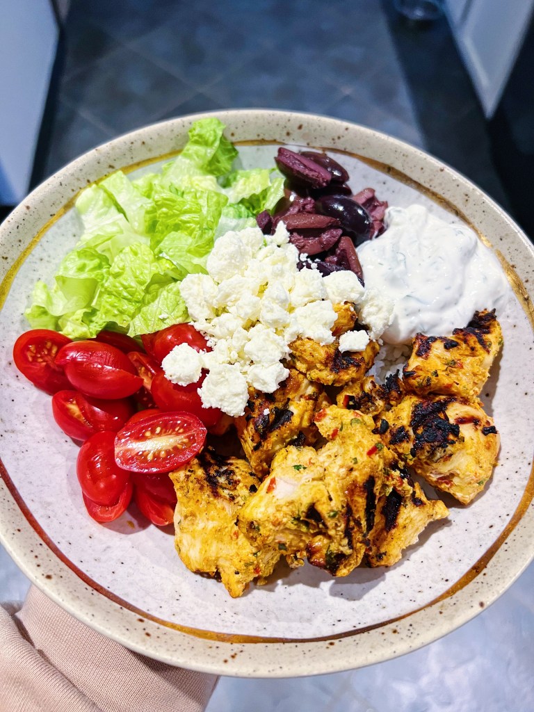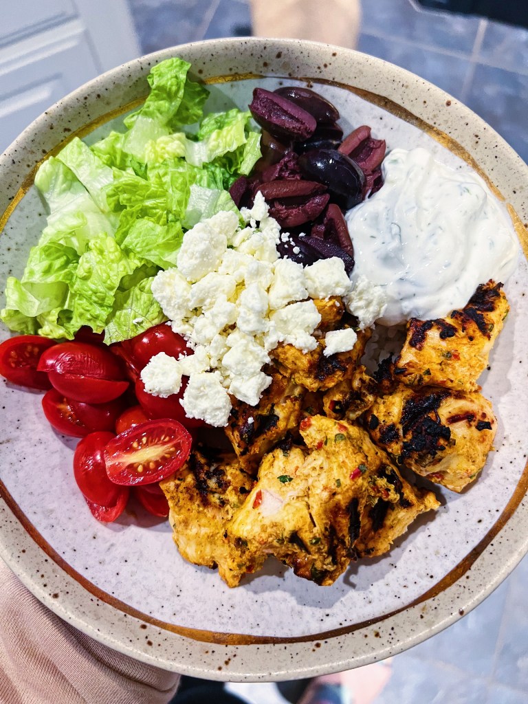 Cava who? I love Cava, but you can recreate their simple, delicious meals at home for a fraction of the price! My chicken gyro bowls will be your new weeknight favorite with quick and easy prep and customizable toppings for the whole family to get involved and enjoy. The chicken is so tender and flavorful and makes for a filling, but light dinner. If you want to take this up a notch, make your own tzatziki using greek yogurt, lemon juice, garlic, fresh dill and diced cucumbers that comes together so quick and tastes so much better than the store bought versions. Also, if you aren’t feeling adventurous to go outside and grill, you can bake the chicken and then finish it off in the broil setting for 4-5 minutes right before serving!