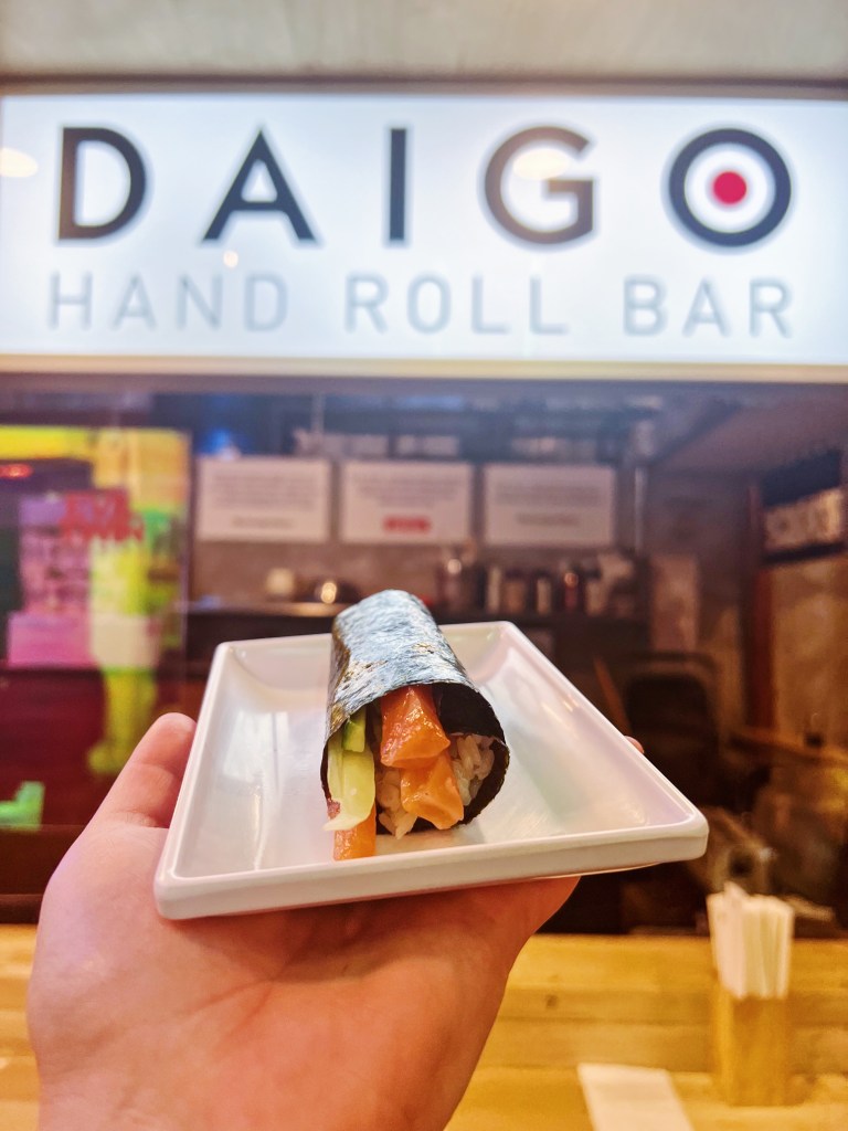 Located in Brooklyn inside Dekalb Market, you’ll find one of Daigo’s locations. A popular hand roll bar with super fresh and high quality sushi. Daigo is serving up delicious hand rolls, Tokyo style at a standing bar – it is perfect for a quick bite and they are so fast. My husband and I popped in here since it was down the street from our hotel and they are so many foods from around the world here. I immediately spotted this hand roll bar because I love sushi and hand rolls so I had to stop and grab something! I grabbed two rolls – Spicy Tuna and Salmon Avocado Cucumber. The fish was so so fresh and the salmon was buttery and smooth. I also appreciated the small amount of rice used so you could taste the fish and that was the main focus. Highly recommend this spot and Dekalb Market in general to explore.