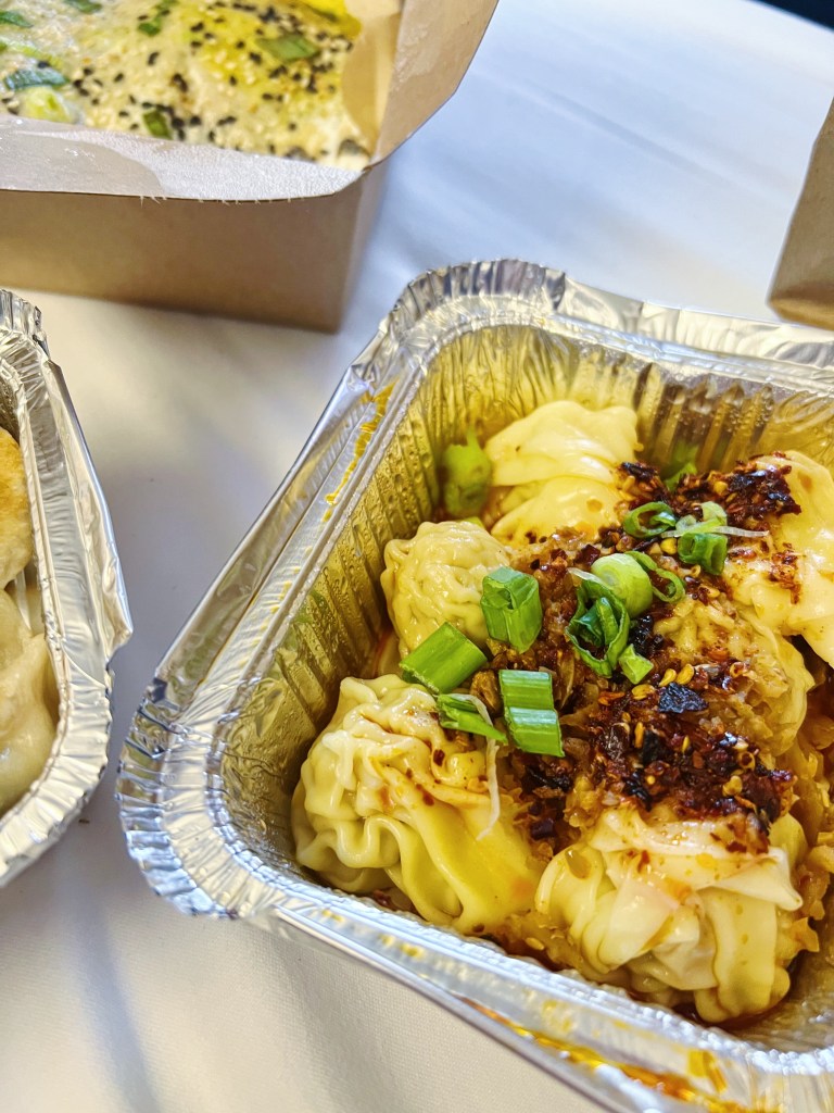 It was so hard to choose what type of dumplings to get, so I wanted to try a few. I ordered Spicy Pork Wontons, Pan Fried Pork & Chive, and Spicy Mini Pork & Mushroom. I also got an Original JianBing – which is a thin crepe like batter that is filled with egg, veggies, sauce and a crispy wonton. These dumplings were incredible. I was also impressed that with the travel how well the pan fried ones held up – they still have a lovely crispy texture. The fillings were also phenomenal – simple, yet flavorful.