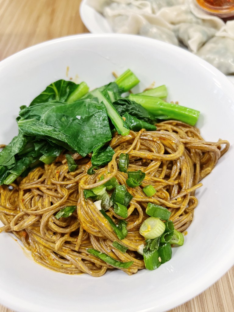 Here’s what we ordered: Pork & Chive Dumplings, boiled; and Spicy Dan Dan Noodles with Bok Choy. I’ll start with the dumplings. As a dumpling lover and a self proclaimed connoisseur, I have eaten a ton of dumplings in my lifetime. For me, these dumplings just missed the mark. They weren’t very flavorful and were definitely lacking something. I prefer boiled dumplings, but maybe these would have been better if they were pan fried. The sauce that was served with the dumplings was also incredibly spicy so that didn’t help with the flavor of the dumplings. I was definitely disappointed, especially with knowing that these are popular and a family recipe. Now for the noodles…Dan Dan is typically on the spicy side and since I don’t have the highest spice tolerance, we asked for the spice to be lowered so we could both enjoy the noodles. These were ridiculously spicy – to the point that they weren’t even edible. The spice was so overwhelming and took away any flavor of the noodles. The noodles were okay, chewy but a little overcooked.