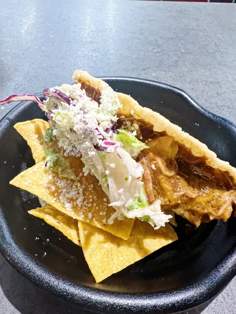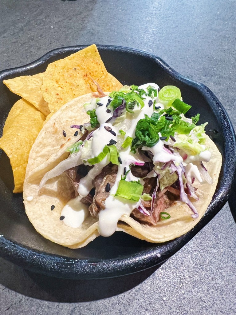 I grabbed two tacos to try – Japanese Beef Curry and Braised Short Rib. The Japanese curry was probably my favorite since it was the most unique and I loved all the flavors and textures it had. It starts with a crispy shell (almost like the outside of crab rangoon) and is filled with beef Japanese style curry with a little heat, cotija cheese and a crispy slaw. The rich curry with the crunchy, fresh slaw paired so well together and was just incredible. The braised short rib was also fantastic but more on the plain side. And what I mean by “plain” is while it had an incredible flavor, there wasn’t a wow factor that blew me away like the curry taco did. The short rib was so tender though and the cabbage and crema balanced it out really well. The corn tortillas though weren’t my favorite, I wish it was served on the crispy shell!