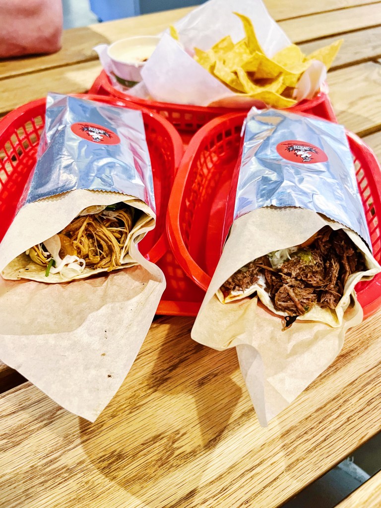 So unfortunately at the time of writing this, El Pollo Burro is temporarily closed and it looks like they are focusing on their other restaurants. While I didn’t try their other concepts, I will still tell ya that El Pollo Burro was absolutely fantastic! The goal of this shop is to bring delicious, accessible food to everyone and they definitely do just that. After a long day at work, my husband and I popped in to this collective and grabbed burritos for a perfect, late-night dinner. All of their burritos are Juarez style that starts with a 12 inch fire grilled tortilla for a wonderful charred flavor. I grabbed the Pollo because well it is in their name and my husband grabbed the barbacoa burrito! Both burritos came with slaw and a combination of sauces that will knock your taste buds out of the park. Both the chicken and barbacoa were incredibly tender and juicy with so much flavor.