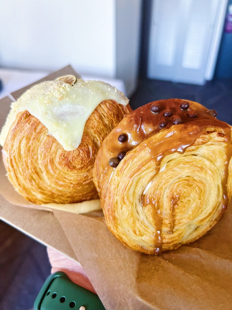 I grabbed two croissants – a Yuzu Citrus and a Chocolate Hazelnut – and then an Iced Black Sesame Latte and Cappuccino. Everything was delicious and the croissants were so light and buttery and flakey. The fillings were also very tasty and creamy and the perfect balance.