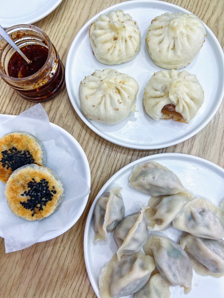Need a quick, delicious bite in downtown Toronto? Look no further than Mom’s Pan Fried Buns! Everything here is homemade, made by hand, and definitely made with love. One of my favorite cuisines is Asian, which I know is a very broad term, but I honestly could eat dumplings everyday for the rest of my life. They are just so delicious and comforting and have so many filling and cooking options. So when I walked by Mom’s in the morning, I immediately took a mental note and came back for lunch. I was BLOWN away with the menu and the restaurant. They have buns, dumplings, fried chicken, noodles and so much more! I could have probably eaten here everyday on my trip and I was pretty bummed I only got to eat there once, but I still think about it. I grabbed the following: Pork Pan Fried Buns, Black Sesame Pancake, and Chive + Pork Dumplings. The pan fried buns were absolutely incredible – so rich and flavorful and bursting with filling. I also love the contrast of the crispy bottom with the soft, fluffy bun. Their chili oil also adds the perfect amount of heat! The dumplings were also perfection. Most people prefer pan fried or steamed, but my favorite is actually boiled dumplings – it just makes that wrapper really stick to the filling almost like a vacuum sealer. Boiled dumplings also have a slightly different texture, they are softer and chewier and really just make the filling taste even better. If you have never had boiled dumplings, definitely try them and definitely go to Mom’s to get them! Don’t skip this place because you will fall in love!