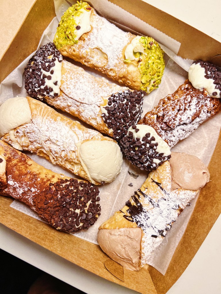 An ICONIC pastry shop since 1946….like that is a long freaking time! Mike’s has a huge following, but it isn’t the only local pastry shop that people flock to. It’s direct competitor is Modern – and people are pretty polarizing on which is better…it’s kind of like Coke vs Pepsi! Now, I’ve always loved Mike’s and I think their selection is better – from cannolis to cakes to cookies to pies, they’ve got everything and it is all made fresh in-house. And while they do have so many delicious, tempting pastries, my favorite and must get is the cannolis. Always filled fresh and made-to-order. You won’t find stale or soggy cannoli shells here! They also have a crazy selection of fillings and toppings that you can make something like 100 combinations. Mike’s cannolis are also bigger than Modern, if that makes a difference in which you try. I grabbed Mike’s first thing after I got into the city, and as you can see from the 6 giant cannolis, I was having a bit of a “my eyes are bigger than my stomach” moment but I regret nothing! With so many flavors I struggled to decide what to get so I went for broke (plus I was sharing them with co-workers). Alright here are the flavors I grabbed: Plain (ofc it is a baseline), Chocolate Chip, Pistachio, Espresso, Florentine, and Hazelnut! I can’t pick a favorite though because they were all so unique and flavorful. I will say that I loveeee how crunchy and crispy their cannoli shells are; they snap when you bite into them but are so light and flakey. Their ricotta filling is also divine – so creamy and smooth with just the right amount of sweetness. Their cream is also thiccccc and I love that. The only downside is that if you don’t eat these same day then they don’t really hold up. The filling still tastes great the next day, but the shells definitely aren’t as crunchy and flakey if they sit overnight; so if you grab cannoli from Mike’s eat them ASAP and don’t wait!