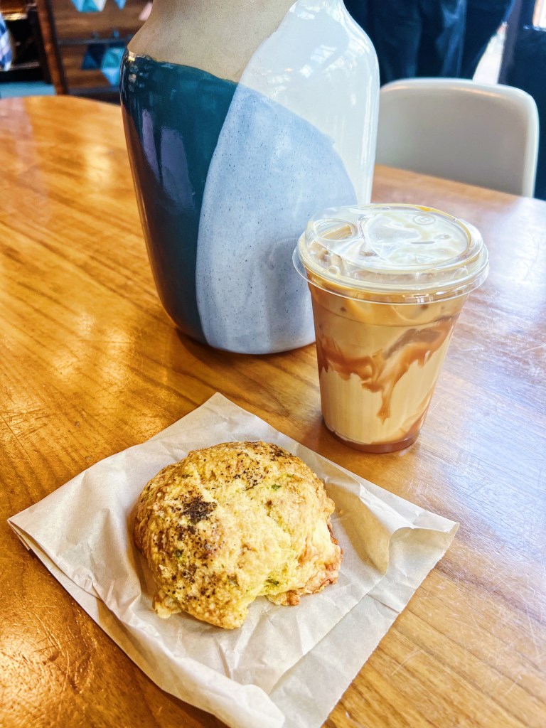 Another wonderful bakery and coffee shop in Boston with multiple locations across the city! I went to the Back Bay location a few times during my trip since my hotel was super close and the coffee here was delish, plus their pastries were fire! Not only do they have a full pastry case, but you can find sandwiches, salads, and some other savory dishes to enjoy. During my several trips there, I was able to try a few different items. Here’s what I tried: Croissant, Breakfast Egg Sandwich, Iced Latte with house-made Salted Caramel Sauce, Cappuccino, and a Savory Scone.