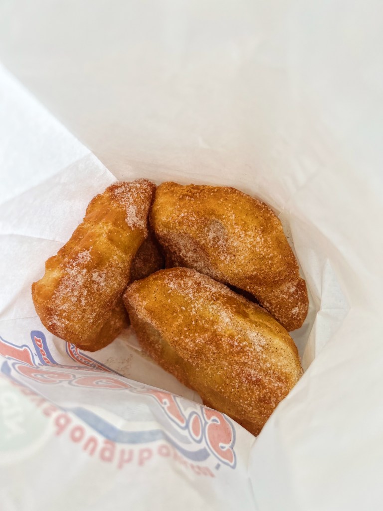 We ordered way too much for the two of us, but like I couldn’t help myself. We got a Cup of New England Clam Chowder, Stuffed Quahogs, Fried Seafood Platter, and Doughboys. Let’s go through it all. The Chowder – they do have all 3 types, but New England is my favorite and Iggy’s really does have some of the best. Steaming hot, but once it cools down it is so creamy and I like how thick it is. Plus it has a decent amount of clams and not just potatoes. I’d give it like a solid 7. If you aren’t from New England, Stuffed Quahogs might be a new term; it is a clam shell stuffed with chopped clams, breadcrumbs, herbs & spices, and sausage. If you aren’t a huge clam fan, these are a delicious way to eat them as they are so buttery and tender and you won’t even realize there are clams in there. Don’t knock ’em until you’ve tried ’em! Next comes the Fried Seafood Platter – this comes with so many things so it is a great way to sample a lot of items, but I would recommend splitting it. Here is what is in it: Fish, Whole Clams, Shrimp, Scallops, Clam Strips, Onion Rings, Clam Cakes, Fries, and Coleslaw. To be honest, it is a lot and pretty heavy since everything is fried, but the fish is delicate and buttery. It is a good plate to get to sample a bunch of things though or if you are indecisive! And last, but certainly not least – the Doughboys. This is one of the other items that Iggy’s is known for. They are basically beignets – but do NOT call them that in front of the locals – and they are fried to order and perfect, pillowy fried dough! They then coat them fresh with sugar that gives them just the perfect amount of sweetness. These also need to be eaten fresh so don’t take them to go or you might not get the full experience! Go check Iggy’s out, and luckily they are open year round now so you can get that chowder and doughboy fix anytime ya need it!