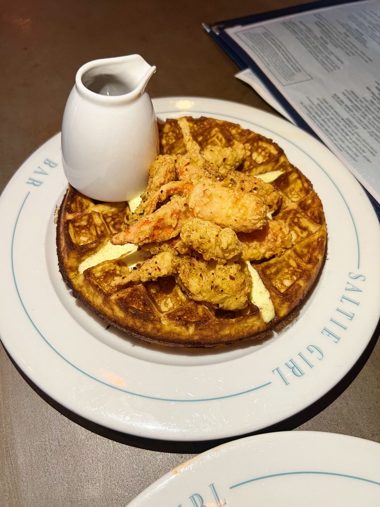 We grabbed some classics for dinner and while we didn’t get any tinned fish, we made sure to get plenty of lobster! I went with the Lobster Roll, warm; and my husband went with the Lobster & Waffle. The lobster roll was served on a warm, buttery roll that was grilled on the outside and had a nice little bite to it. The lobster was also so tender and sweet with large chunks and then topped with a warm, slightly sweet butter. It also comes with Saltie Girl’s own sea salt + vinegar chips – they were fine but the lobster roll was stunning. The Lobster and Waffle though was unreal! The lobster chunks were lightly battered and fried but not too much that it detracts from the luscious, velvety lobster. The waffle was also so fluffy and buttery and topped with a sweet corn butter and a spicy maple syrup – the ultimate sweet + spicy combo. I still think about this meal and it is one of my favorite spots in Boston and even in New England. Yes, it is expensive, but the quality is high and the flavors are great. Even if you just go for a drink and split something small, this is a restaurant that you don’t want to miss! For their full menu and to see their extensive list of tinned fish, click here.
