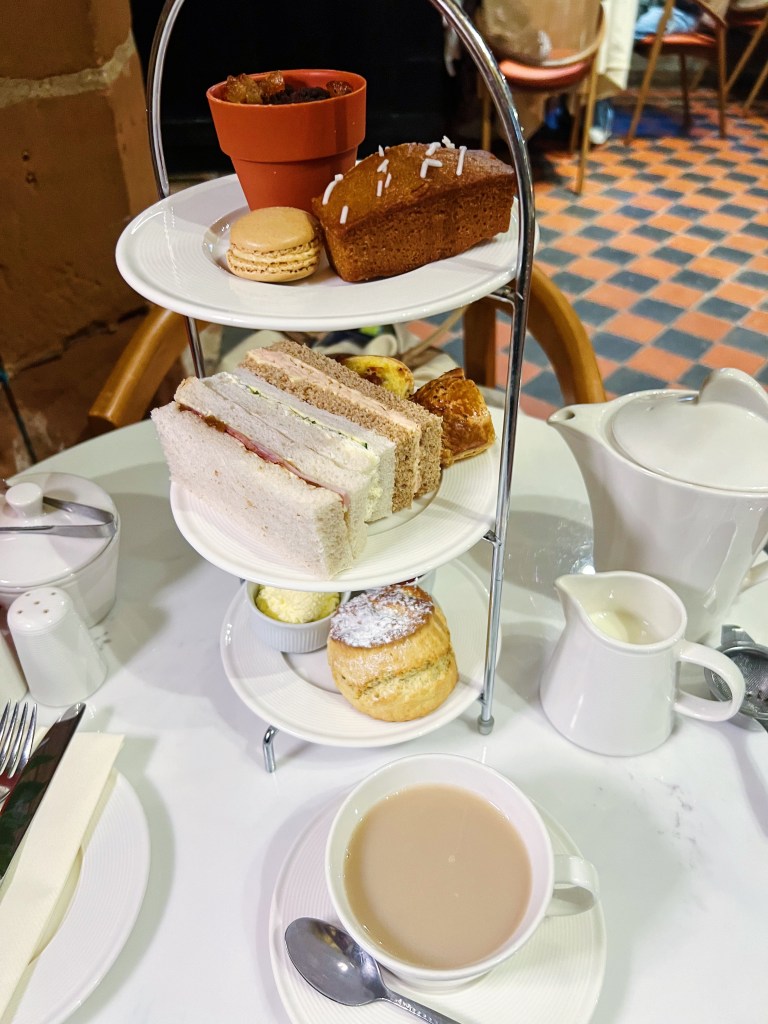 Ever wanted to have afternoon tea in a cathedral? Well in Coventry at St. Mary’s Guildhall you absolutely can! This gorgeous Guildhall has stunning medieval architecture and so much history. It is actually one of the few locations that survived the WWII bombings. It has been around for years and years so this is a wonderful historical area to explore. I was able to snag a reservation for afternoon tea for 1 and it was a truly unique and unforgettable experience. Anytime I am in England, I love doing afternoon tea at least once – it is just so fun and relaxing, so when I found St. Mary’s I knew it was the perfect spot. You must reserve your team spot at least 24 hours in advance though, so make sure to plan ahead or you will miss out. You can still go dine in their restaurant if you aren’t able to get a tea reservation. Their tea menu comes with your selection of tea and an assortment of finger sandwiches, desserts, small bites, and of course a scone with jam and clotted cream (the highlight always). And it is only 30pound per person! They even have a few menu variations to accommodate those with dietary restrictions. And if you are looking for something a little stronger, you can add wine or bubbles to your tea set. The food was actually really good and I love the variety you get with afternoon tea. My favorite item was the warm, buttery, flakey scone with the Cold, creamy clotted cream and the tangy jam. There is something about that combination that just works and is so delicious. If you are in Coventry, treat yourself and enjoy the history of the area!