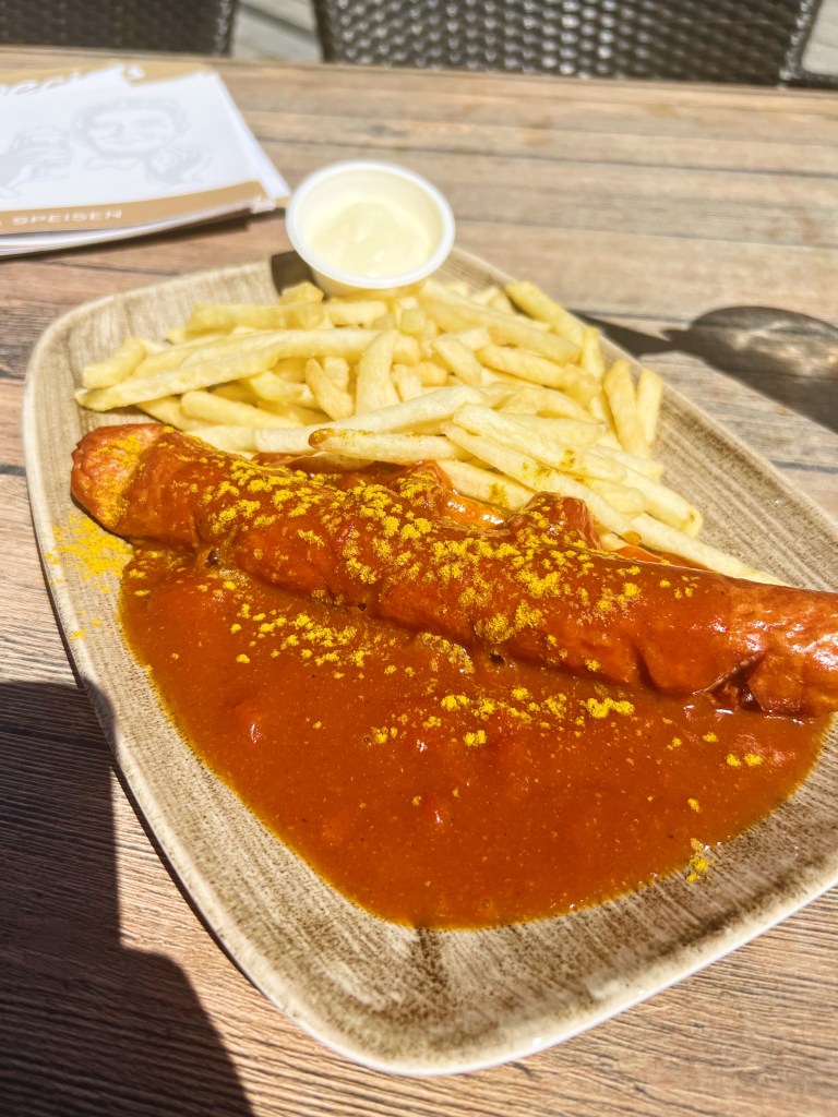 This restaurant is located in a building with a cool history. Originally built in 1825 as a casino it withstood many decades and was even damaged in 1944 to then be rebuilt. Finally in 1999, the building was repurposed and renovated and in 2005 Bitburger moved in and has occupied it since! It boasts a total of 390 seats inside AND 350 seats on the terrace, making it the largest gastronomic spots in Trier. Their menu sprawls several pages, with about half of those pages dedicated to German beers and cocktails (both alcoholic and non-alcoholic options). The food menu includes breakfast, salads, sausages, flatbreads, and traditional German dishes. The entire menu though focuses on German dishes that are eaten around various regions of Germany so you’ll find lots of delicious options. This spot was so fun and a great option for outdoor seating when the weather is nice. I was actually shocked at how packed this place was as the patio was almost entirely full. The menu is a bit overwhelming, especially if you don’t speak German or are not familiar with the dishes. They do have English translations on their menu, but there are still a lot of options to look through. I ended up ordering the Berlin Currywurst since I wanted something on the less hearty side, but still wanted a substantial lunch to fill me up. If you have never tried Currywurst, it is a signature dish from Berlin and is served with a sausage (typically cut in to pieces) and is served with a tomato based sauce with lots and lots of curry powder. It also usually comes with fries and it is best with a side of mayonnaise. Bitburger’s version of the Berlin currywurst was pretty tasty (although not as good as what you can get in Berlin but I won’t hold it against them since they are one of the furthest cities from Berlin!). Overall though this spot was a winner. Plenty of seating, cool history of the building, and delicious German food. If you are looking for very typical German dishes, this is absolutely the spot to try. Just make sure to grab a beer or cocktail to enjoy with your meal.