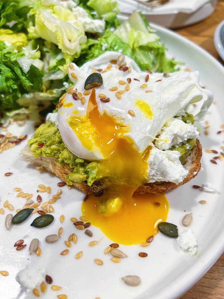 We stopped by Ebb & Flow on a weekday for a leisurely brunch and were treated to the perfect breakfast spread. We ordered the Avocado Toast, Ebb Irish, Mini Carrot Cake, and Flat Whites. The Carrot Cake was a delightful surprise – a perfect small-sized sweet treat to start the meal with our coffees. The cake was moist and flavorful, with a creamy, tangy frosting that was simply divine. The Avocado Toast was anything but boring, with thick sourdough, smashed avocado, feta, and chili jam, all topped with perfectly poached eggs and a side salad. It was a delicious and satisfying dish that was sure to please even the pickiest of eaters The Ebb Irish was a hearty and delicious take on a traditional Irish Breakfast, with poached eggs, bacon, sausage, potato cake, mushrooms, roasted tomatoes, and sourdough. It was a filling and flavorful meal that was sure to start the day off right.