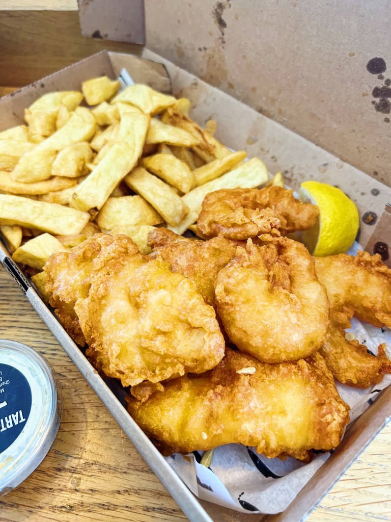 And oh, the fish – it was absolutely sublime. The cod was cooked to perfection, with a crispy exterior giving way to a light and flaky interior. It was truly some of the best fish and chips I’ve ever had. We also tried the cod and prawn mix, which was equally delicious. The combination of the two proteins added a lovely depth of flavor to the dish, and it was perfectly complemented by the crispy chips.