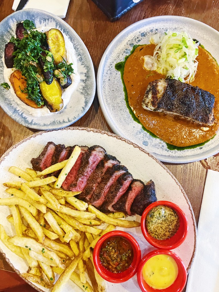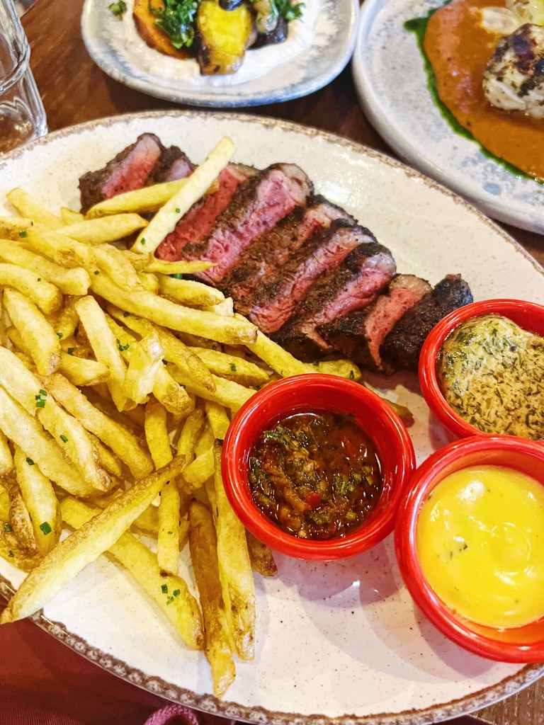 During our visit, we had the pleasure of trying some of Mister S’s signature dishes, including the Burnt End Spring Rolls, Fingerling Potatoes, Steak Frites with Bearnaise, Chimichurri, and a Mustardy Sauce, and the Halibut. The Burnt End Spring Rolls were a standout, with a perfect balance of flavors and textures that left us wanting more. The steak was cooked to perfection, with a rich, beefy flavor that was enhanced by the smoked Bearnaise sauce.