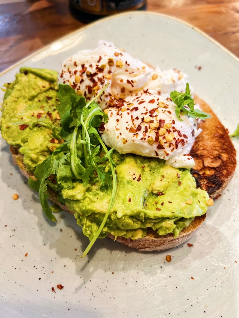 My husband and I stumbled upon Olive & Bean one morning and fell in love with the atmosphere and the food. We opted to grab breakfast, and it was the perfect decision. I ordered the Poached Eggs & Avocado, which was a masterclass in simplicity and flavour. The dish consisted of smashed avocados on a thick, hearty slice of toasted sourdough, topped with perfectly poached eggs and a sprinkle of peppery rocket. The combination was absolute perfection, and the cappuccino that accompanied it was rich and velvety with a dusting of chocolate on top. My husband’s Eggs Royale was equally impressive, featuring poached eggs, smoked salmon, and a generous dollop of creamy, tangy hollandaise sauce on toasted sourdough. The flat white he ordered to go with it was expertly crafted, with a smooth and silky texture.