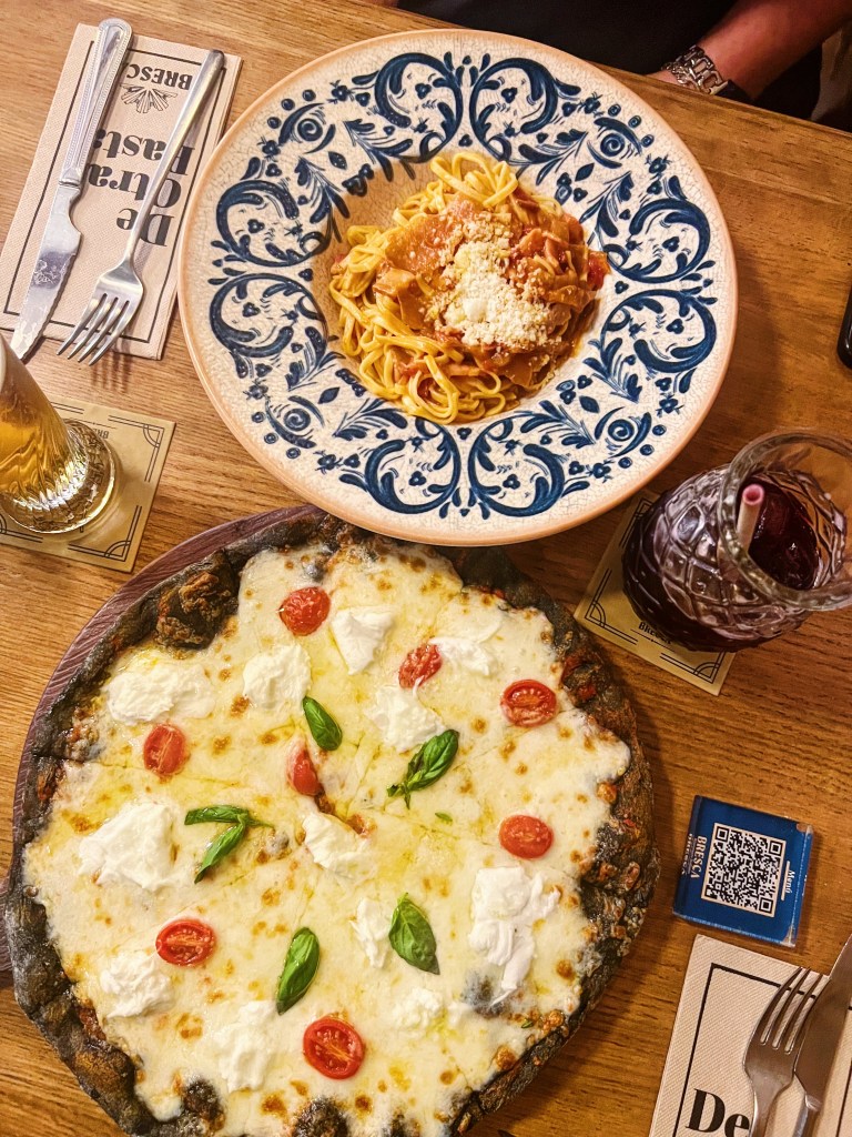 If you’re looking for a vibrant and Instagram-worthy spot to grab some Italian food in Madrid, Bresca might be the place for you. With multiple locations around the city, this restaurant boasts a fun and quirky atmosphere that’s sure to stand out. The location we visited was a bit of a mixed bag, though. We arrived a little early and the place was pretty empty, which might have been a factor in the overall experience. That being said, the space itself is definitely aesthetically pleasing, with bright colors and a lively vibe.