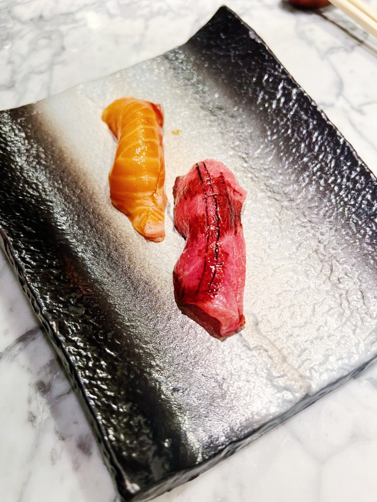 If you’re a sushi aficionado, you owe it to yourself to try Kyoshi in Madrid. This Michelin Guide restaurant is a game-changer, serving up some of the best sushi we’ve had outside of Japan. Located inside the Double Tree hotel, Kyoshi may seem like an unlikely candidate for exceptional sushi, but trust us, it’s a revelation. The quality of the fish is unmatched, and the creations are truly phenomenal. We opted for the chef’s tasting menu, which consisted of 8 courses of expertly prepared nigiri and sashimi. Each piece was a masterclass in flavor and technique, with every bite showcasing the chef’s skill and attention to detail. Each piece also brought a unique flare and flavor and no two pieces were the same. It is worth noting that the Chefs Menu changes daily based on what is freshest and what the chef feels like creating, so I loved that uniqueness to it.