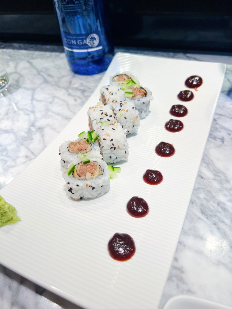 But it wasn’t just the tasting menu that impressed – we also ordered the Peking Duck sushi roll, which was a unique and flavorful twist on a classic dish. The combination of tender duck, crunchy texture, and subtle spices was a highlight of the meal. In addition, we ordered a Tuna and Salmon sashimi platter, and a bowl of their Katsu ramen to try out that was also incredible.