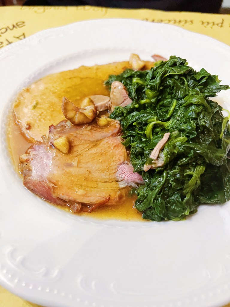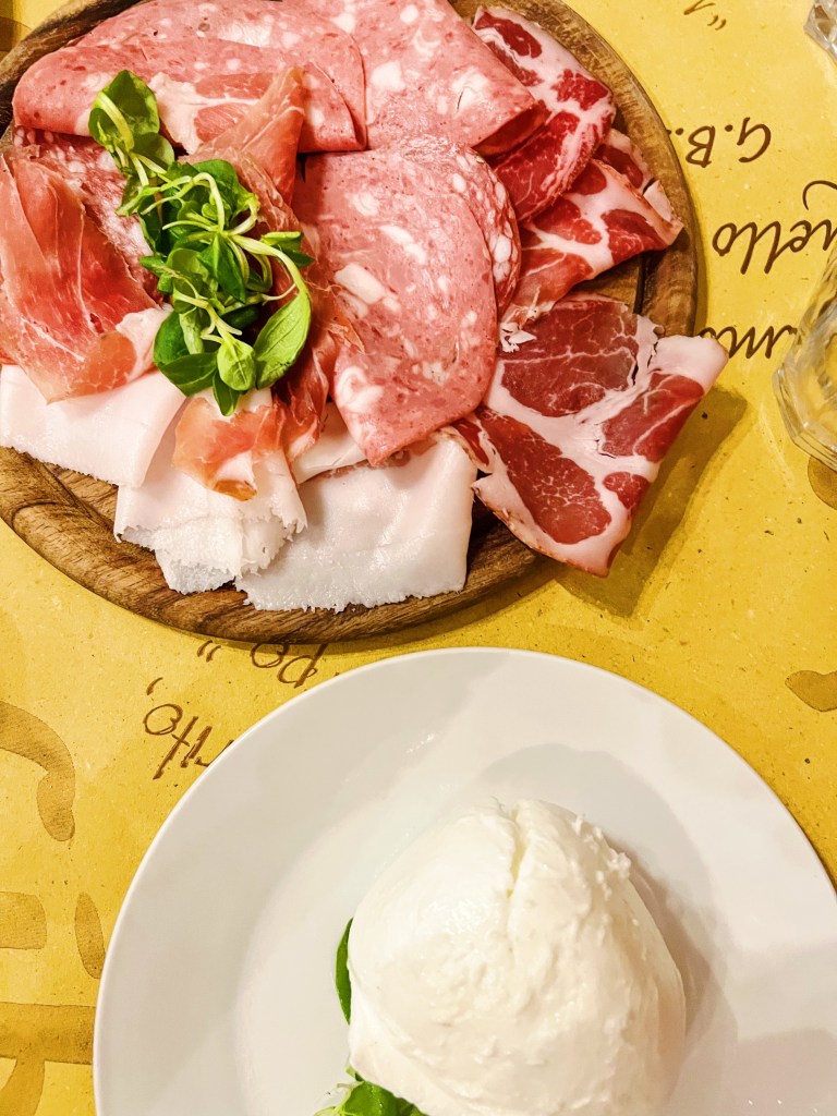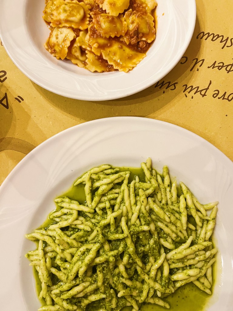 As a local spot, Osteria del Fiat is off the beaten path for most tourists, and the waitstaff definitely don’t speak English. So, be prepared to practice your Italian phrases and enjoy the authentic experience. We didn’t let the language barrier deter us, and we were rewarded with an incredible dinner. We started with fresh mozzarella and a charcuterie plate featuring salami, prosciutto, and mortadella. The cured meats were perfectly paired with the creamy mozzarella, and we couldn’t wait for the main course. I opted for the Trofie Pesto, a handmade, rolled pasta dish smothered in fresh, basil pesto. It was light, yet hearty and filling – the perfect comfort food. My husband chose the menu of the day, which consisted of Agnolotti with Meat Sauce and a slice of veal with gravy and spinach. Both dishes were love at first bite – the flavors were rich and authentic, and the portions were generous.