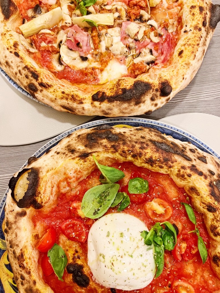 We grabbed dinner at Cammafa and each ordered a pizza. I opted for a simple yet elegant Burrata Pizza, topped with fresh tomato sauce, cherry tomatoes, fresh basil, and a whole ball of creamy Burrata. The combination was absolute perfection, and the fresh flavors really shone through. My husband, on the other hand, chose the Four Flavors pizza, loaded with fresh tomato sauce, ham, mushrooms, artichokes, sausage, and of course, plenty of cheese. While I loved my pizza, I think I preferred the simplicity of my Burrata Pizza, which allowed the pizza dough and crust to take center stage. And what a star it was! The crust was delicate with a lovely char, and the inside was fluffy and warm – perfect for a cozy dinner.