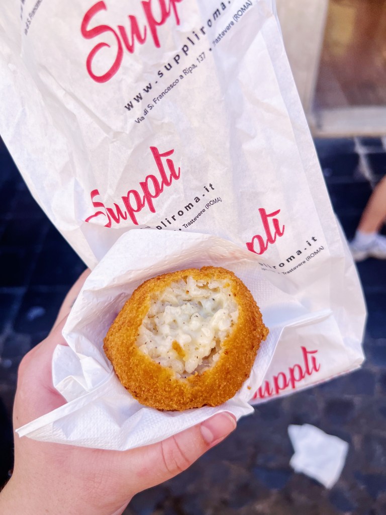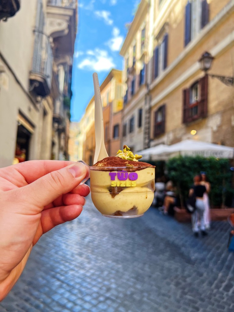 Rome is probably the most popular Italian destination for travelers. And it makes sense because it has so much history. There is so much to do, see and of course eat in Rome and I highly recommend going with a plan. Most of the iconic spots require reservations/tickets and they can sell out quickly, especially in peak travel months from around April – September. A few of my favorite things to see that I felt were worth it are: Colosseum and Roman Forum (you can get a pass for both just leave plenty of time for the Forum because it is large); Trevi Fountain (but go early or late and don’t bother paying and standing in line to go to the bottom); Spanish Steps; Pantheon; Castel Sant’Angelo (this was a last minute for us and we grabbed tickets when we got there but it has stunning views of the city); Trastevere Neighborhood (this is the cutest area to walk around on the cobblestone streets). If you’re wanting to go to the Vatican and the Sistine Chapel make sure you book well in advance – we missed out on this because we weren’t able to get tickets even a month out. I also highly recommend the Hop On Hop Off busses, yes it is touristy, but Rome will put some miles on your shoes and everything is spread out; plus their metro system isn’t the best. The Hop On Hop Off is a great way to get around to the different areas if you aren’t wanting to take public transportation and don’t want to pay for a taxi/uber since that can add up! We ended up using the public transportation a decent amount but I recognize this is not everyone’s first choice. Aside from all the sites, Rome is known for food and there are some very specific things you have to try while there. The most famous is probably the 4 Pastas – Carbonara, Cacio E Pepe, Amatriciana, and Gricia; then you’ve got great “street food” like Suppli, Pizza by the Weight, Trapizzino; for hearty options you must try Saltimbocca, Braised Artichokes, and Oxtail Stew; for sweet treats Gelato, Tiramisu, and Maritozzo are classics. Below you will find everywhere we dined on our 3 day trip in Rome. My favorite spots that should not be missed are: Luciano (get the cacio e pepe); Antica Pesa (make sure to grab a reservation); Suppli (try the braised pork Suppli); Two Sizes (a perfect afternoon tiramisu pick me up).