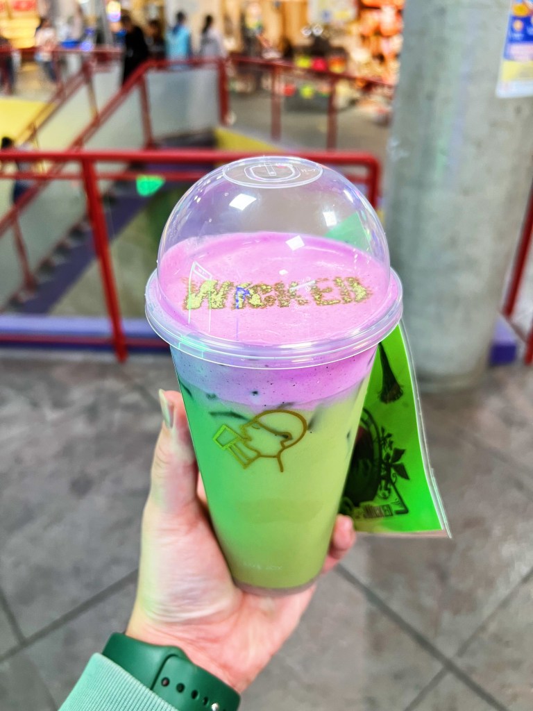 I was in the mood for something interesting and saw they had a Wicked themed tea, which was a matcha base with a vibrant ube foam on top.